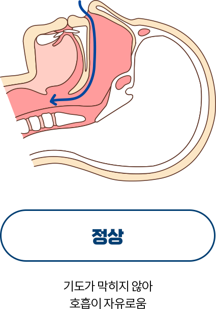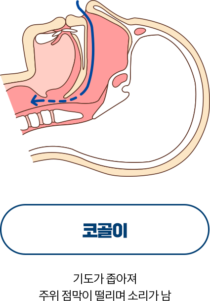 코골이는 수면중 공기가 통과하는 상기도가 좁아져 흡기시 빠르게 통과하는 공기흐름으로 인해