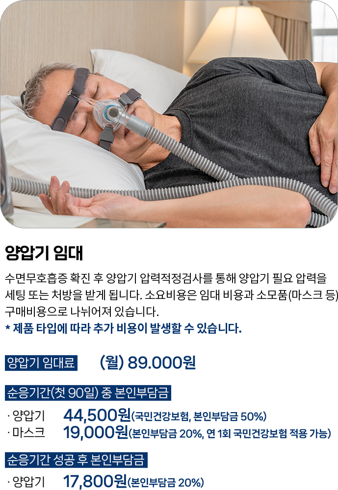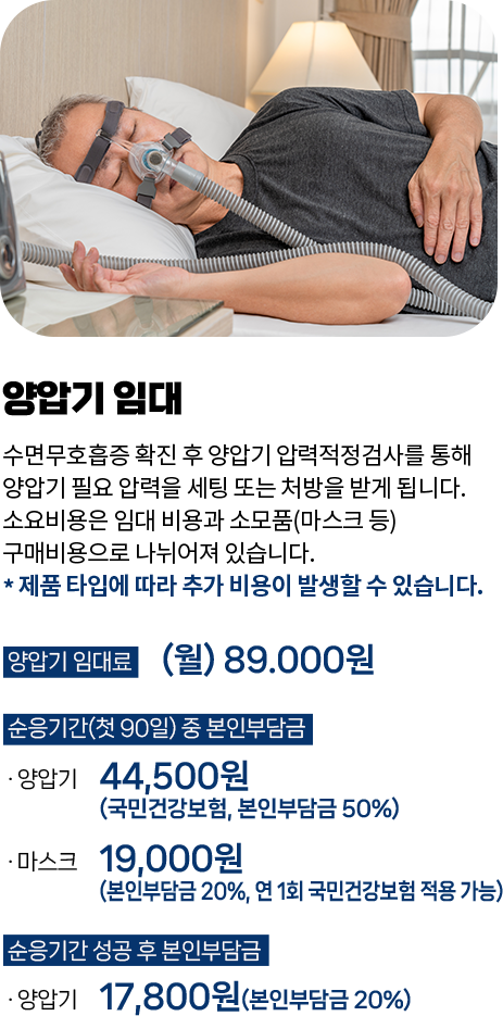 수면다원검사 및 적정압검사 , 양압기 렌탈이 건강보험 적용이 되었습니다.